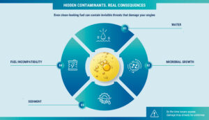Microbial contamination is another serious concern. Bacteria and fungi can develop in the boundary layer between water and fuel, creating sludge and acidic byproducts that damage tanks and fuel lines. Sediment, rust, and other particulates may also be introduced during transport or storage, eventually clogging filters and affecting engine performance.